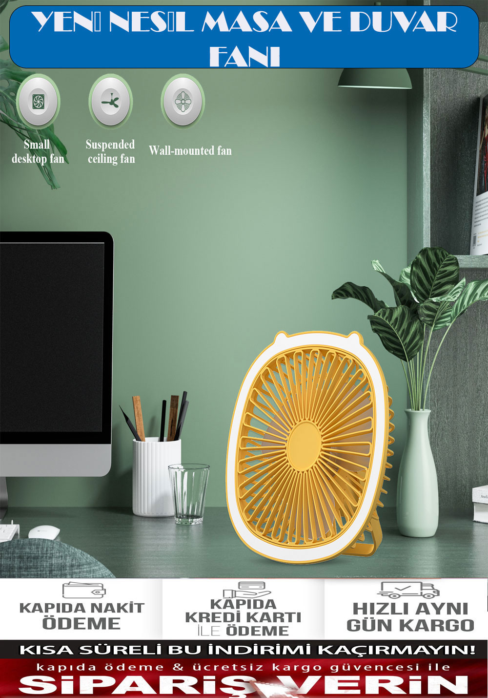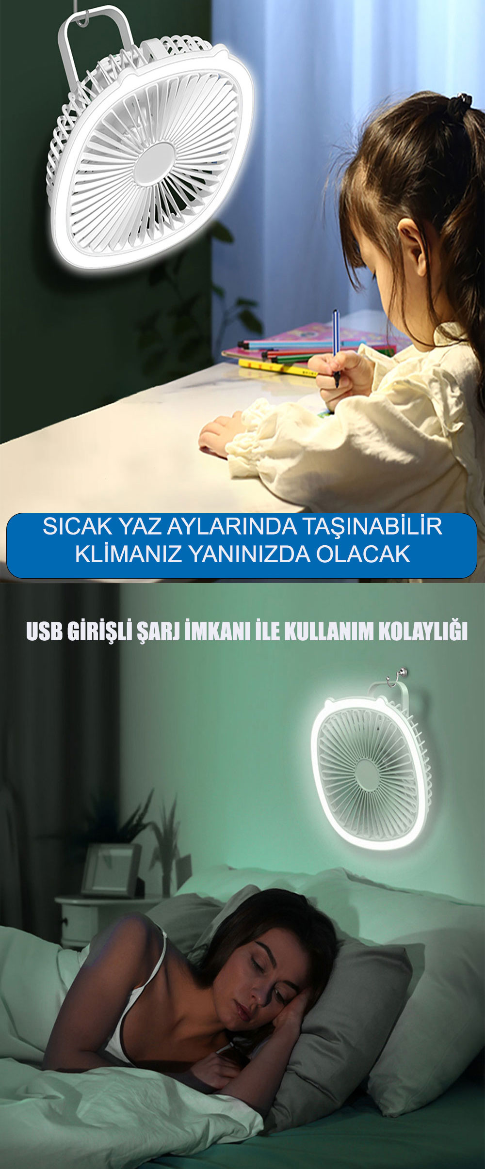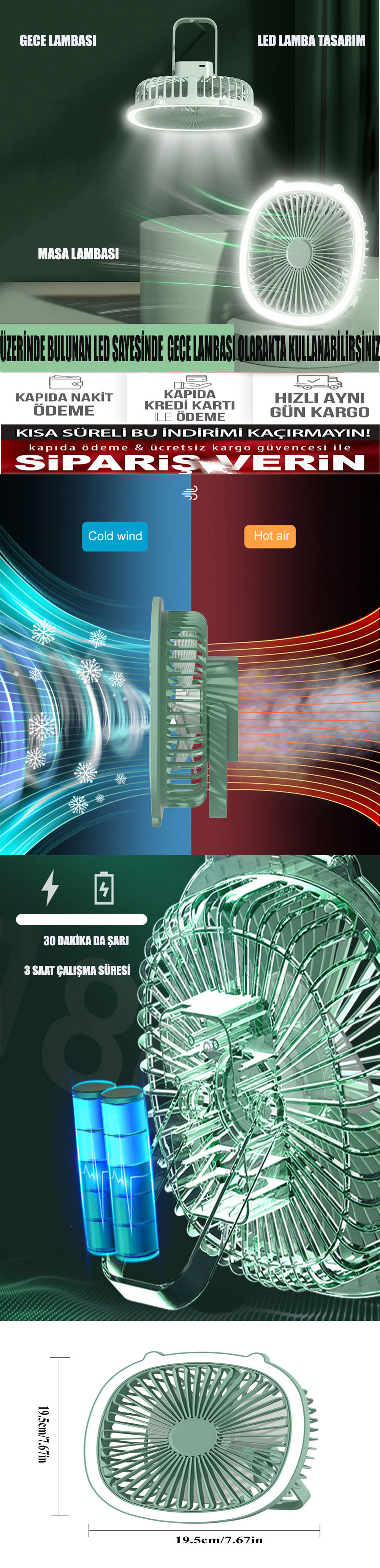 ŞARJLI LEDLİ MASAÜSTÜ FAN